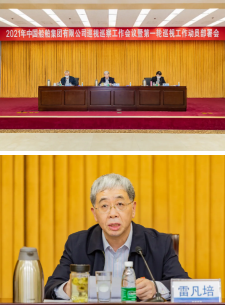 3月31日,中國船舶集團(tuán)有限公司召開2021年巡視巡察工作會議暨第一輪巡視工作動員部署會。中國船舶集團(tuán)黨組書記、董事長、巡視工作領(lǐng)導(dǎo)小組組長雷凡培,紀(jì)檢監(jiān)察組組長、黨組成員、巡視工作領(lǐng)導(dǎo)小組副組長李佳穎出席會議并講話。