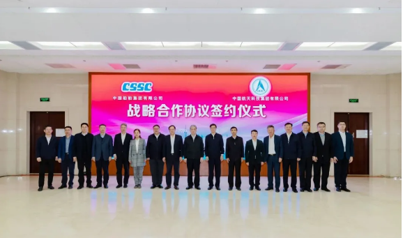 中國(guó)船舶集團(tuán)、航天科技集團(tuán)總部有關(guān)部門負(fù)責(zé)人參加簽約儀式。