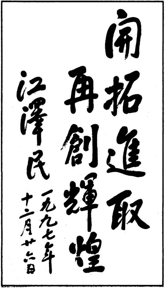 1997年12月26日,江澤民同志為中國船舶工業總公司題詞:“開拓進取,再創輝煌”。