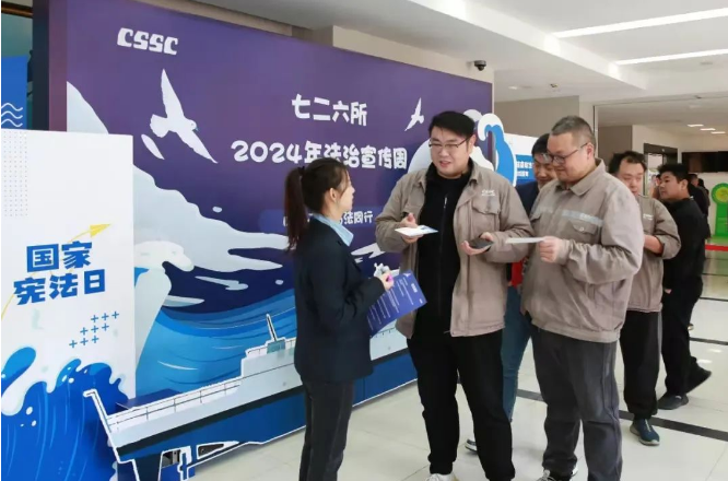 2024年是新中國第一部憲法頒布70周年,今年12月4日是第十一個國家憲法日。按照中央宣傳部、司法部、全國普法辦《2024年全國“憲法宣傳周”工作方案》的部署要求,中國船舶集團(tuán)有限公司以“大力弘揚(yáng)憲法精神,推動進(jìn)一步全面深化改革”為主題開展法治宣傳周活動,深入學(xué)習(xí)宣傳貫徹習(xí)近平法治思想,弘揚(yáng)憲法法治精神,宣貫法治央企建設(shè)要求和集團(tuán)公司“懸規(guī)植矩、循序善治”特色法治文化,為建設(shè)世界一流法治企業(yè)營造濃厚的法治氛圍。