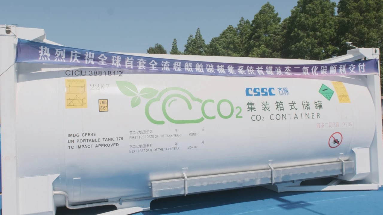 2024年5月10日,“全球首套全流程船舶碳捕集系統(tǒng)首罐液態(tài)二氧化碳接收儀式暨交流會” 在上海舉辦,中國船舶集團所屬上海齊耀環(huán)??萍加邢薰緦抖诵遁d的首罐液態(tài)二氧化碳正式交付使用方,標志著船用碳捕集技術(shù)在全球范圍內(nèi)首次完成“二氧化碳捕集-液化存儲-卸岸-轉(zhuǎn)運-再利用”的全流程生態(tài)閉環(huán),成為船用碳捕集產(chǎn)業(yè)里程碑式的案例。