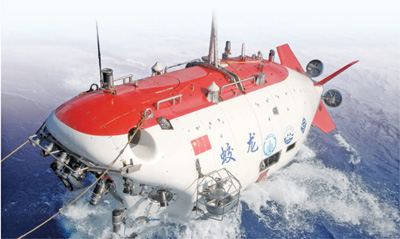 2012年6月15日,蛟龍?zhí)栞d人潛水器進(jìn)行7000米級(jí)海試首次下潛試驗(yàn)。(人民視覺)