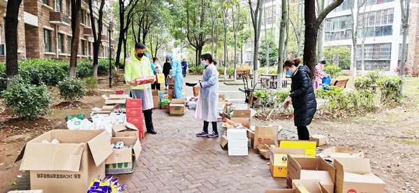 ????武漢船機員工鮑衛東、聶芳琳、黃莉得知消息后,主動參與小區志愿服務,和大家一起承擔收貨、轉運、清點、分發等工作。為了減少人員聚集,他們需要把握節奏,有序分發,每次發貨時間至少需5個小時,有時甚至要忙到晚上11點多鐘。他們的挺身而出有效緩解了該小區居民的物資短缺問題,為抗擊疫情貢獻了積極力量。