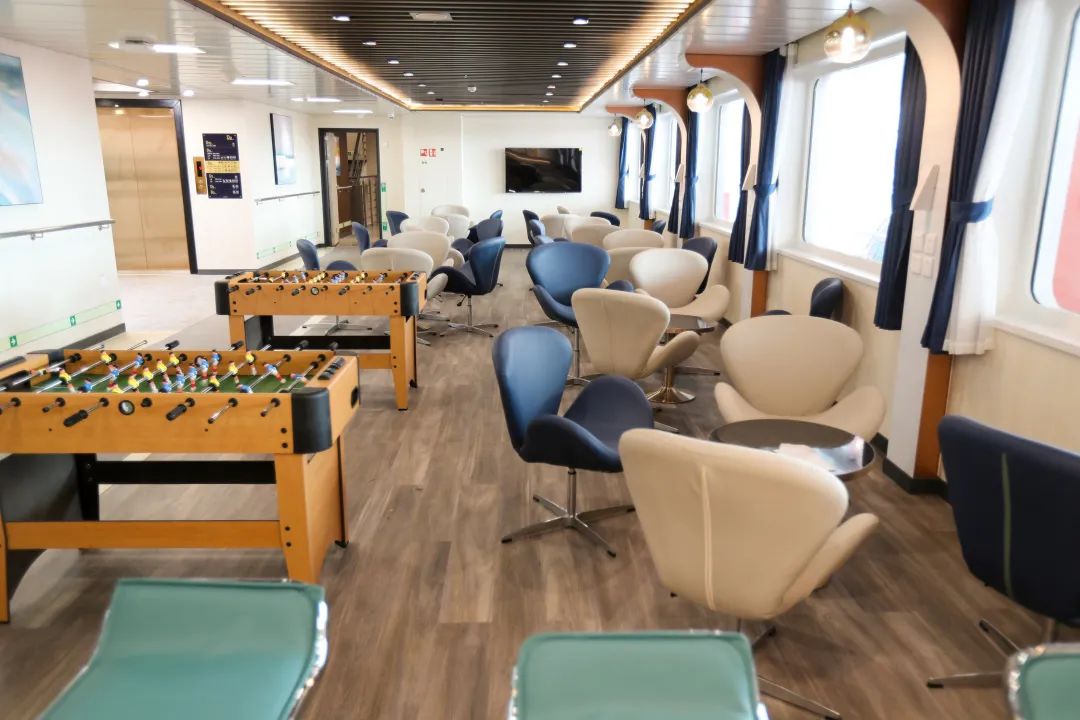 值得注意的是,這艘國內最豪華的客滾船由上海船院負責詳細設計,中船九院負責內裝藝術設計,其內部裝飾材料國產化率達到了95%,船上的一體化智能客運系統同樣來自國內自主設計集成,是一艘全部實現國內自主設計、建造,內裝及重要系統實現國內配套的豪華客滾船。