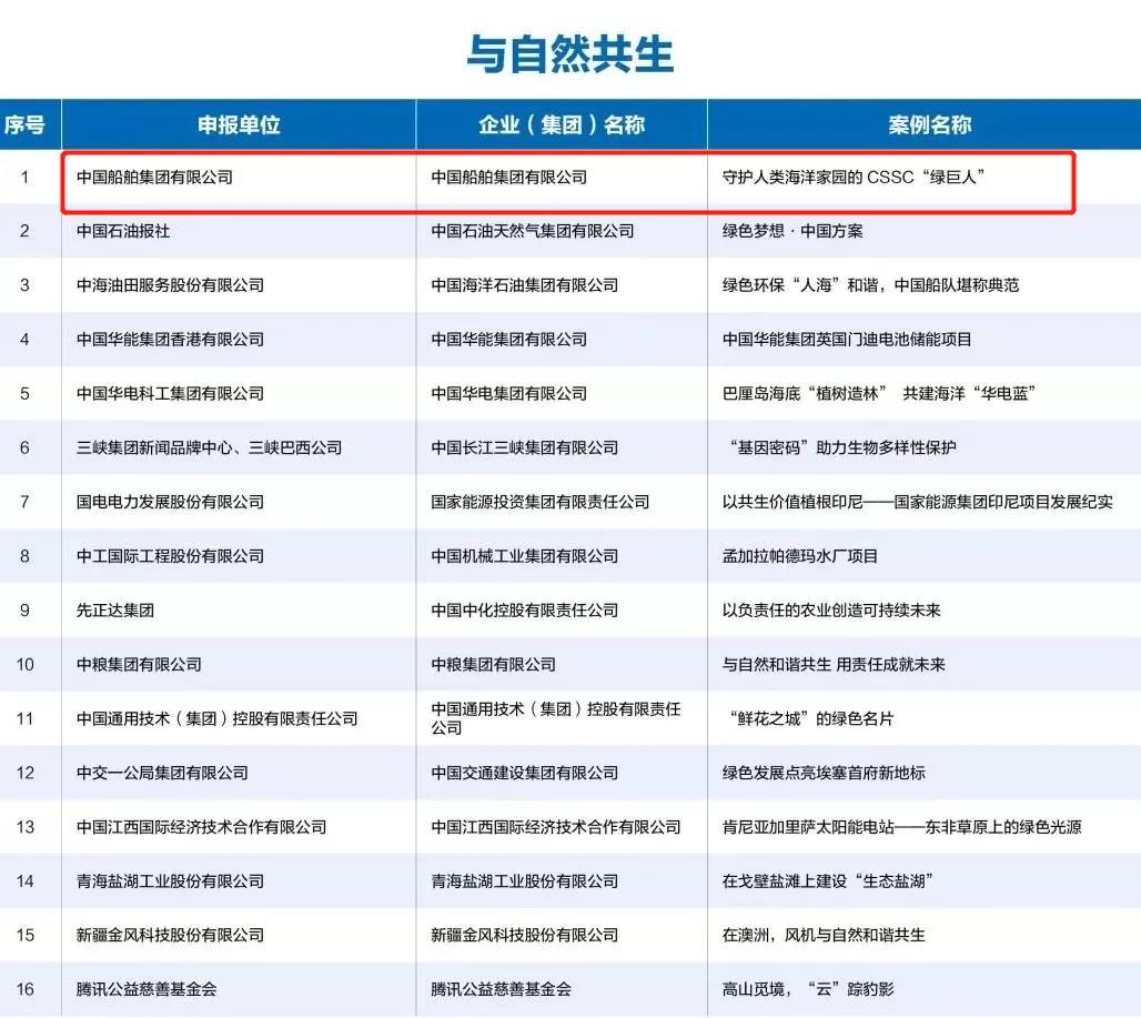 10月21日,2021中國企業國際形象建設案例征集入圍結果正式公示。由中國船舶集團申報的《守護人類海洋家園的CSSC“綠巨人”》順利入圍,2021中國企業國際形象建設案例“與自然共生”類。