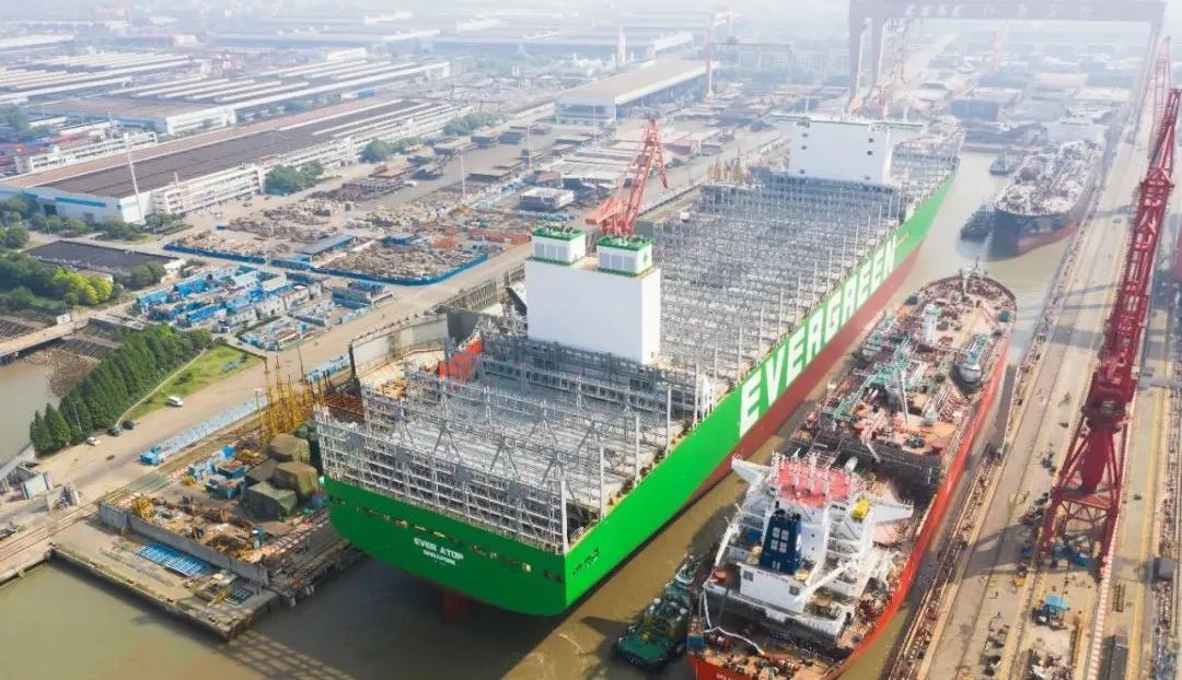 本次出塢的三艘船分別是江南造船為長榮集團建造的24000TEU超大型集裝箱船,為西南海運建造的99000立方米超大型乙烷運輸船,為萬華建造的86000立方米超大型液化氣運輸船。起浮的兩艘半船則分別為99000立方米超大型乙烷運輸船后續船以及86000立方米超大型液化氣運輸船后續船。