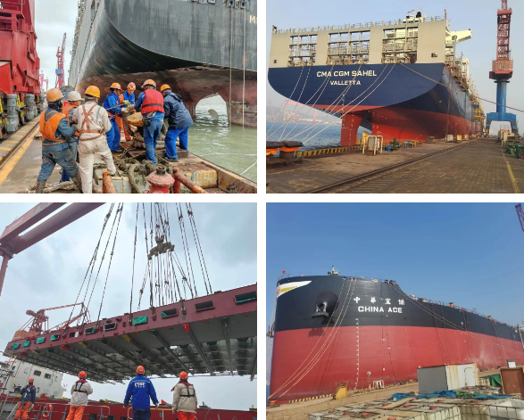 外高橋造船的船舶分段、廣船國際的在修船舶、北海造船的在建船舶……,施工持續推進!
