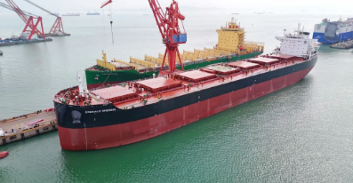 “海鯨”系列新巴拿馬型85000噸散貨船是黃埔文沖自主研發設計的船型,載重量達85600噸,貨艙艙容達106000立方米,適用于裝載煤、礦石、谷物、水泥等散貨。