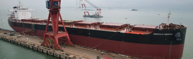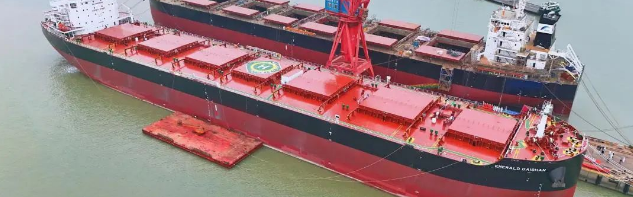 2月20日,中國船舶集團旗下黃埔文沖聯合中船貿易建造的85000噸散貨船“EMERALD SHENGSI(翡翠嵊泗)”號舉行交船儀式。