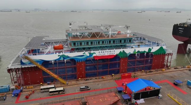 中國船舶集團旗下廣船國際建造的半潛式深遠海智能養殖旅游平臺“普盛海洋牧場6號”命名交付。