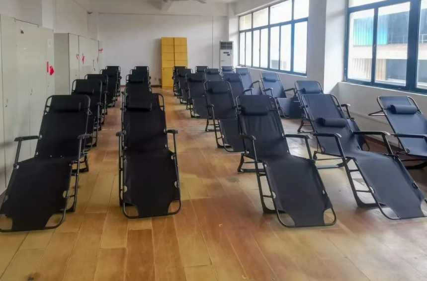 外高橋造船對現(xiàn)有場地資源進行優(yōu)化改造,在辦公樓、食堂等17處區(qū)域為員工設(shè)立了休息區(qū)域,為高溫天奮戰(zhàn)在一線的職工提供舒適、充足的納涼空間。休息點設(shè)有空調(diào)、風(fēng)扇等降溫設(shè)備,并根據(jù)各部門使用環(huán)境,配備折疊床、涼席等物資,滿足一線職工高溫休息需求。