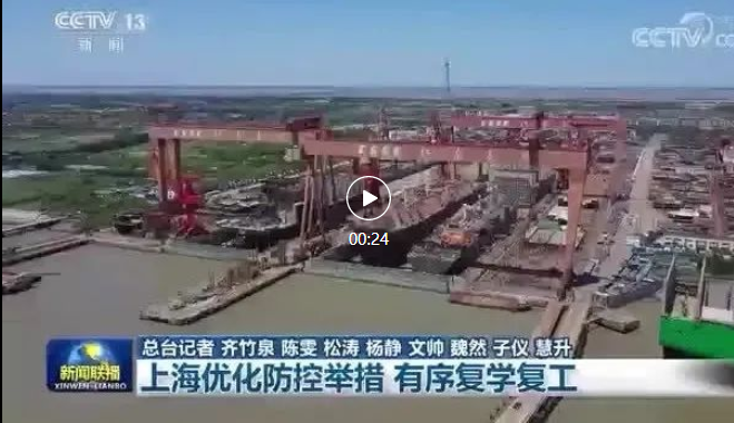 新聞聯(lián)播聚焦上海優(yōu)化防控舉措,加快推動復(fù)工復(fù)產(chǎn),點贊中國船舶集團旗下三大船企都實現(xiàn)復(fù)工復(fù)產(chǎn)。 | 來 源:集團公司黨群工作部 | 責 編:寧湘舒 | 校 對:王 琦 | 審 核:項 麗/甘豐錄