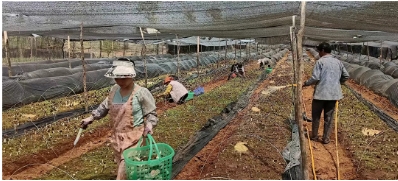 在這充滿希望的季節(jié)里,鶴慶縣六合鄉(xiāng)松坪村羊肚菌種植基地一壟壟羊肚菌破土而出,頭戴獨(dú)特的褐色“網(wǎng)格帽”,在陽光下閃爍著光芒,為松坪村繪就一幅生機(jī)勃勃的致富畫卷。